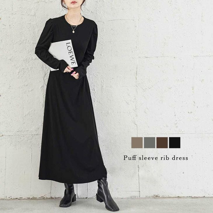 リブワンピース パフスリーブ フレア キレイめ 可愛い 【春夏半額SALE対象】 リブワンピース パフスリーブ フレアシルエット キレイめ 大人可愛い ロング ワンピース 長袖 レディース メール便 2025春夏新作 【lswp302-34a】【即納:1-5営業日】【送料無料】メ込2