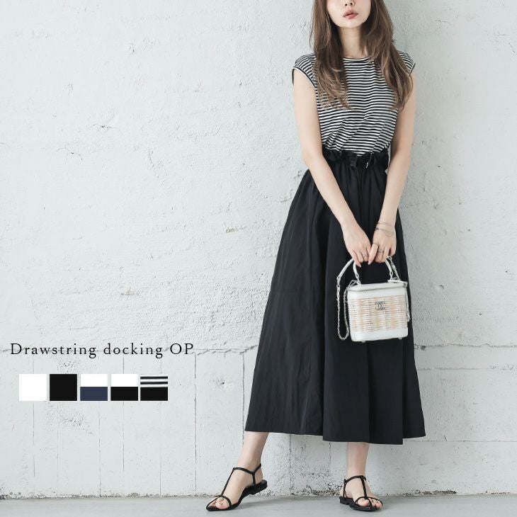 ドッキングワンピースワンピース レディース ボリューム感 ドッキングワンピース ワンピース 柔らかい レディース 軽やかな ボリューム感 ドローコード入り おすすめ おしゃれ ブラック フリーサイズ メール便 2025春夏新作 【lswp305-586】【即納:1-5営業日】【送料無料】ヤ込1