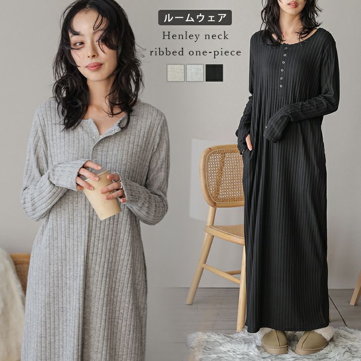 ルームウェア 部屋着 ロングワンピース ヘンリーネック 【秋冬半額SALE対象】 ルームウェア 部屋着 ロングワンピース ヘンリーネック サムホール 指穴付き 起毛リブ素材 Iラインシルエット 長袖 おうち時間 レディース おすすめ おしゃれ 2025秋冬新作 【lswpaw25-1719】【即納:1-5営業日】【送料無料】メ込2
