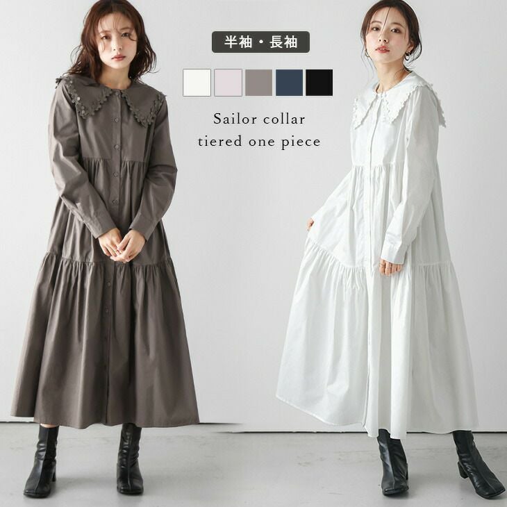 セーラーカラー フラワーレース ティアードワンピース ロング丈 半袖 長袖 【春夏半額SALE対象】 セーラーカラー フラワーレース ティアードワンピース ロング丈 体型カバー 半袖 レディース おすすめ おしゃれ 半袖 長袖 2026春夏 【lswpss24-342】【即納:1-5営業日】【送料無料】メ込2
