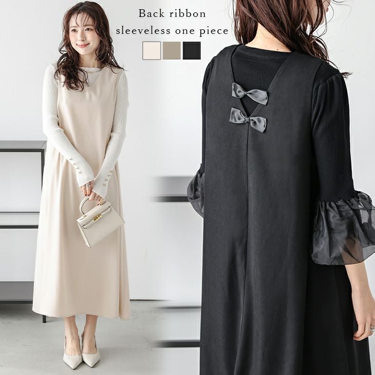 リボン ワンピース ノースリーブ Vネック ロングワンピース リボン ワンピース ノースリーブ Vネック ロングワンピース マキシ丈 Aラインシルエット レディース おすすめ おしゃれ フリーサイズ 2025春夏新作 【lswpss24-944】【即納:1-5営業日】【送料無料】メ込2