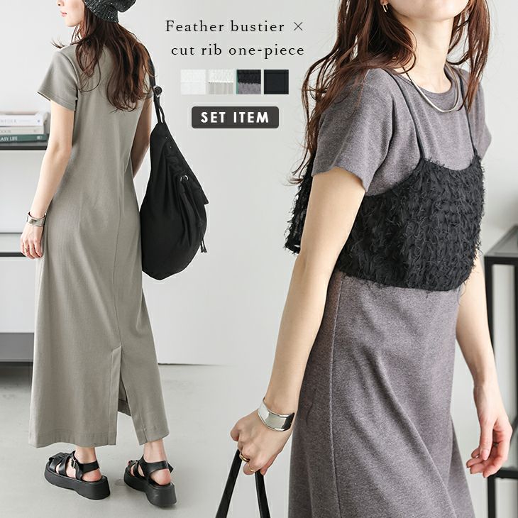 セットアイテム ワンピース ビスチェ シアー フェザー 【春夏半額SALE対象】 セットアイテム ワンピース ビスチェ シアー フェザー キャミ レイヤード ロング リブカットソー ラクチン レディース 2025春夏新作 【lswpss25-1211】【即納:1-5営業日】【送料無料】メ込2