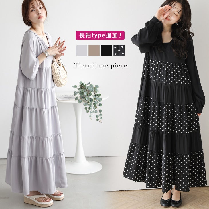 ティアードワンピース ギャザー キーネック 無地 ドット ティアードワンピース ギャザー キーネック 無地 ドット 裏地付き 体型カバー 5分袖 レディース おすすめ おしゃれ 2025春夏新作 【lswpss25-1367】【即納:1-5営業日】【送料無料】宅込