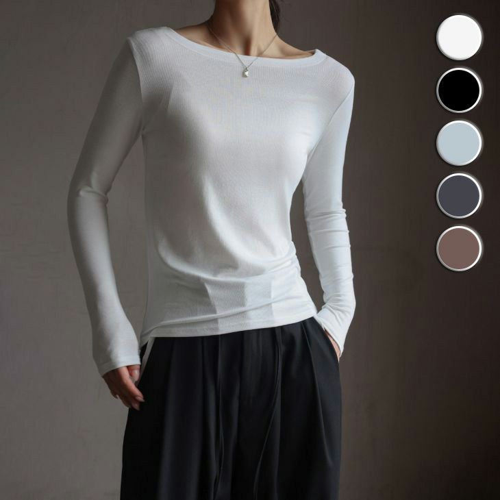 ボートネック ロングTシャツ ロンT Tシャツ 無地 [AMELY by La-gemme]ボートネック ロングTシャツ ロンT Tシャツ 無地 シンプル カジュアル きれいめ 長袖 インナー トップス おすすめ レディース オシャレ トレンド 人気 プチプラ 韓国ファッション【ltpss24-214】【予約販売:15-20日】【送料無料】メ込1