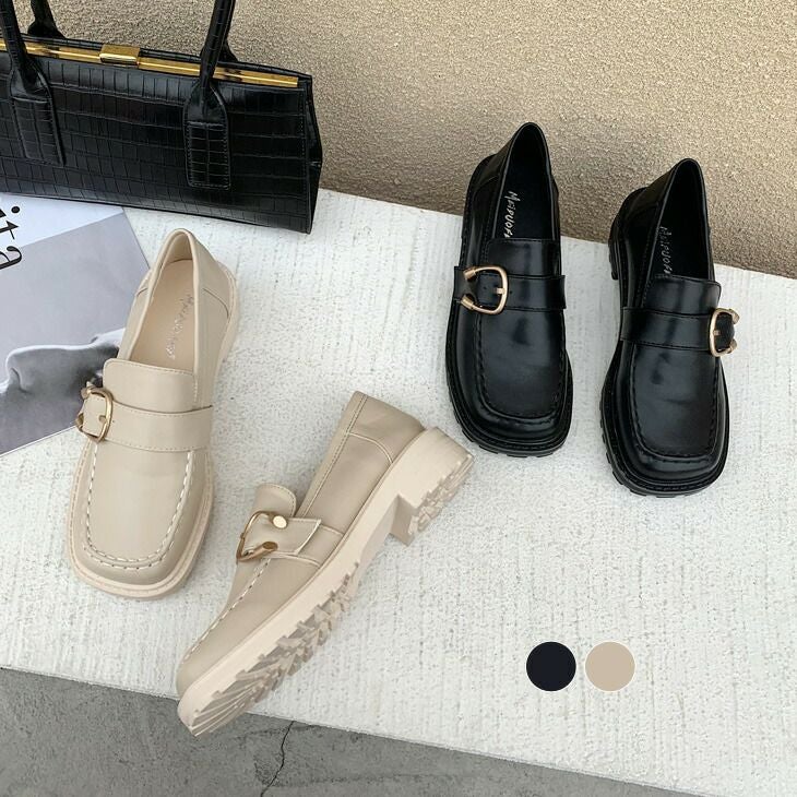 スクエアトゥ ベルトデザイン ローファー レディース おじ靴 スクエアトゥ ベルトデザイン ローファー レディース おじ靴 厚底 仕事 オフィス 通勤 歩きやすい カジュアル やわらか 大人 通学 美脚 シューズ スニーカー おしゃれ 可愛い キレイ 疲れない 2025秋新作 【mdf2130-1】【予約販売:15-20日】【送料無料】宅込