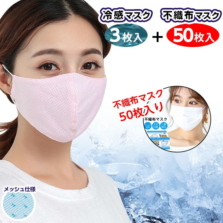 ひんやり 涼しい 洗える アイス シルク 夏用マスク 【今だけ!アイスシルク冷感マスク3枚+50枚不織布マスク】 ひんやり 涼しい 洗える アイス シルク 夏用マスク 冷感接触 長さ調整 メッシュ 大人【ms-h033】【即納:1-5営業日】【送料無料】宅込