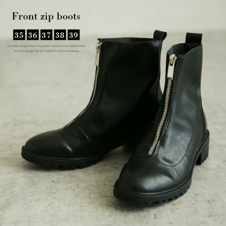 ショートブーツ レディース ローヒール ジップ フロントジップ ショートブーツ レディース ローヒール ジップ フロントジップ ブーツ ショート丈 歩きやすい 厚底 おしゃれ 可愛い シューズ 靴 ブラック 2025秋新作 35/36/37/38/39 【xianli-789】【即納:1-5営業日】【送料無料】宅込