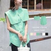 シャツ ノースリーブ ビッグカラー トップス 小顔効果