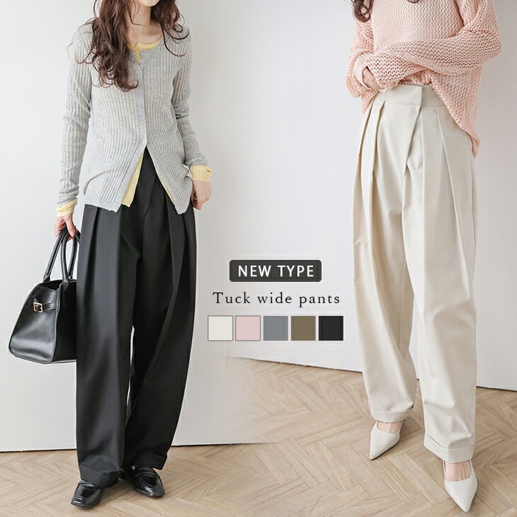 [AMELY by La-gemme]タックワイドパンツ ボトムス 美シルエット 【春夏半額SALE対象】 [AMELY by La-gemme]タックワイドパンツ ボトムス 美シルエット ハイウエスト カジュアル きれいめおしゃれ 体型カバー韓国ファッション 2025春夏【abt210-377】【rp】【即納&予約:4月30日入荷予定順次発送】【送料無料】メ込2