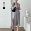 [AMELY by La-gemme]プリーツワンピース ロング丈 ウエストマーク