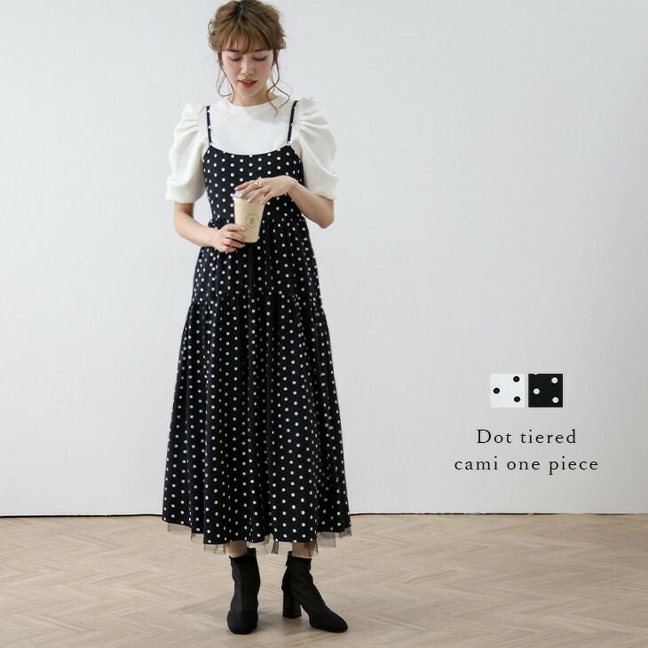 キャミワンピース ドット ティアード フレア リボン チュール フェミニン 大人可愛い 体型カバー レイヤード レディース おすすめ フリーサイズ メール便 2025春夏新作【lss24-wp111】【即納:1-5営業日】【送料無料】メ込2