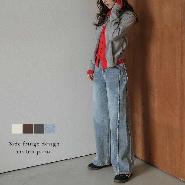 他の画像を見る サイドフリンジ デニム カラーパンツ ワイドパンツ サイドフリンジ デニム カラーパンツ コットン100 ワイドパンツ 美脚 カジュアル キレイめ シンプル 着映え レディース おすすめ おしゃれ 2025秋冬新作【lsbtaw25-1740】【即納:1-5営業日】【送料無料】宅込 通常 ¥ 7,980 のところ ¥ 7,980 税込 詳細を見る お気に入りに登録する