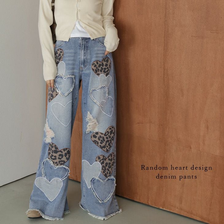 他の画像を見る パンツ デニム ワイド ハート ヒョウ柄 [AMELY by La-gemme]パンツ デニム ワイド ハート ヒョウ柄 フリンジ ダメージ加工 ヴィンテージ風 脚長効果 美脚 ボトムス レディース おすすめ おしゃれ 2025秋冬新作 【abtaw25-1677】【即納:1-5営業日】【送料無料】宅込 通常 ¥ 9,960 のところ ¥ 9,960 税込 詳細を見る お気に入りに登録する