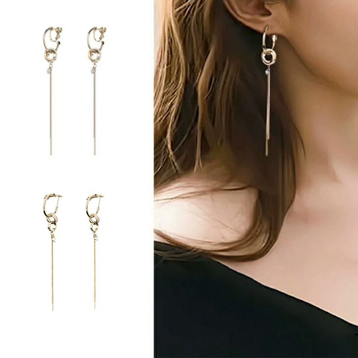 イヤリング ノンホールピアス 揺れる チェーン ロング [AMELY by La-gemme]イヤリング ノンホールピアス 揺れる チェーン ロング ラインストーン 華奢 上品 シンプル ゴールドカラー パーティー おすすめ おしゃれ レディース トレンド 人気 プチプラ 韓国ファッション 2025秋冬新作【azk510-256】【予約販売:15-20日】【送料無料】メ込2