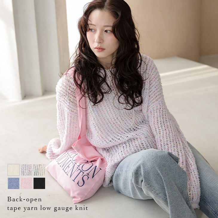 他の画像を見る ニット ローゲージ テープヤーン バックオープン リボン 【春夏半額SALE対象】 [AMELY by La-gemme]ニット ローゲージ テープヤーン バックオープン リボン オーバーシルエット ドロップショルダー 肌見せ 抜け感 トップス レディース 2026春夏新作 【atpss26-1861】【即納&予約:4月30日入荷予定順次発送】【送料無料】メ込3 通常 ¥ 6,980 のところ ¥ 3,480 税込 詳細を見る お気に入りに登録する