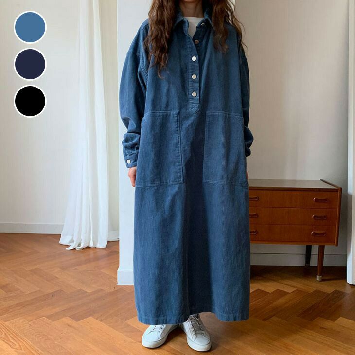 ワンピース コーデュロイ オーバーシルエット マキシ ロング [AMELY by La-gemme]ワンピース コーデュロイ オーバーシルエット マキシ ロング ゆったり カジュアル ワンマイルウェア 長袖 レディース 韓国ファッション 【24aw-it14】【予約販売:15-20日】【送料無料】宅込