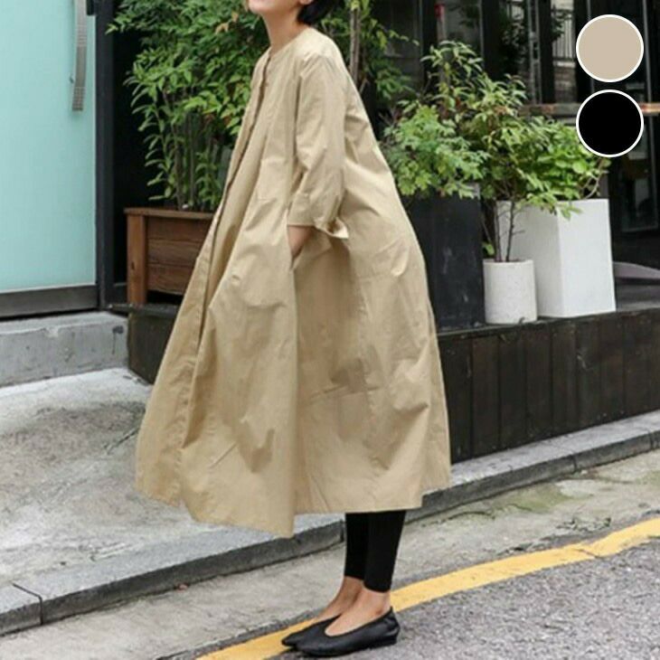 ノーカラー ルーズ ワンピース ロング オーバーサイズ [AMELY by La-gemme]ノーカラー ルーズ ワンピース ロング オーバーサイズ シンプル 無地 七分袖 カジュアル きれいめ 秋冬 おすすめ レディース オシャレ トレンド 人気 プチプラ 韓国ファッション 【2528-tb】【予約販売:15-20日】【送料無料】メ込2