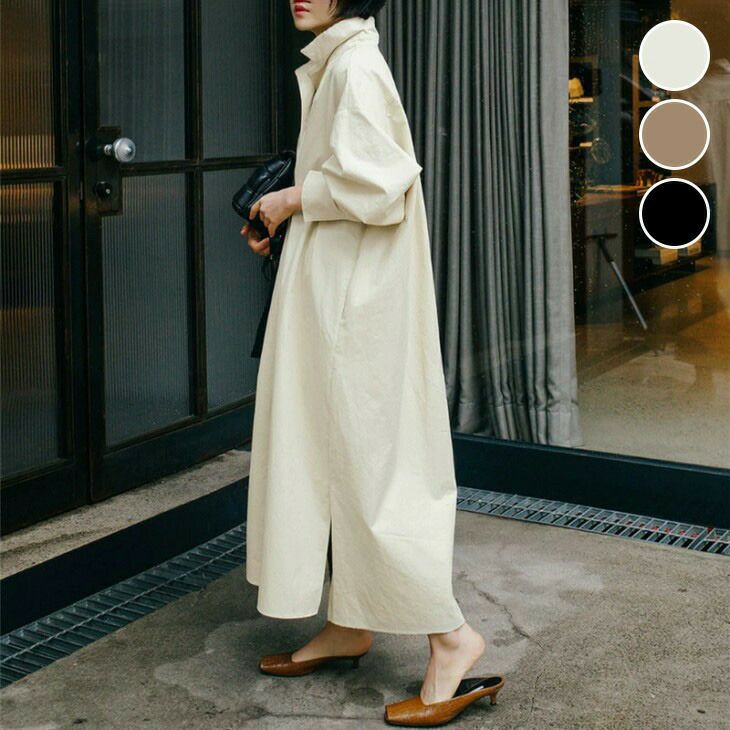 トレンチ風 ボリュームスリーブ ワンピース サイドスリット [AMELY by La-gemme]トレンチ風 ボリュームスリーブ ワンピース サイドスリット ロング スタンドカラー 無地 きれいめ 秋冬 おすすめ レディース オシャレ トレンド 人気 プチプラ 韓国ファッション 【8387-dsd】【即納:1-5営業日】【送料無料】メ込2