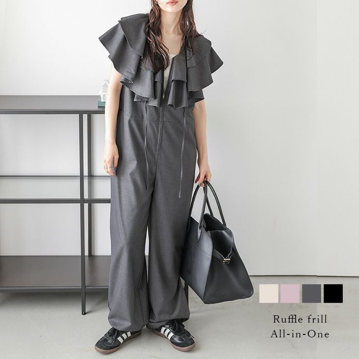 ラッフルフリル オールインワン つなぎ 小顔効果 【春夏半額SALE対象】 [AMELY by La-gemme]ラッフルフリル オールインワン つなぎ 小顔効果 着痩せ ビッグカラー キレイめ 大人カジュアル マルチウェイ レディース メール便 2025春夏新作【aorss25-1315】【即納:1-5営業日】【送料無料】宅込