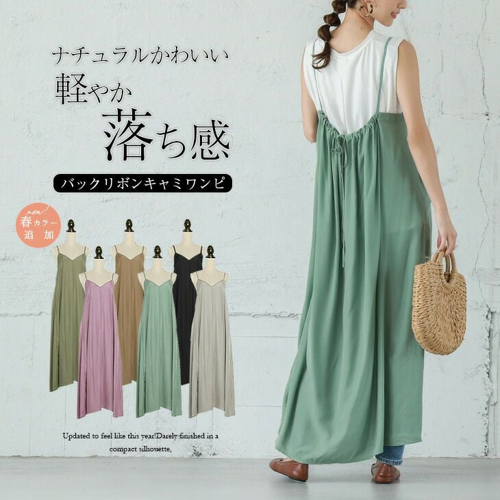 バックリボン キャミソール ワンピース キャミ レディース 奇跡の再販!新色追加! バックリボン キャミソール ワンピース キャミ レディース ワンピ サロペット スカート 楽ちん 体型カバー ボトムス おしゃれ 可愛い メール便 2025春夏 フリー 【lgww-at3577】【即納:1-5営業日】【送料無料】メ込2