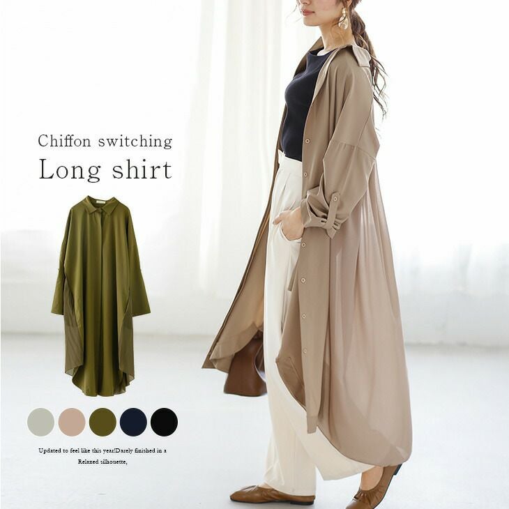 シフォン切替 シャツワンピース シャツワンピ ロングシャツ シフォン切替 シャツワンピース シャツワンピ ロングシャツ レディース バックシフォン 長袖 ロング丈 おしゃれ 大人 無地 可愛い ブラック メール便 2025秋新作 フリー 【lgww-at3667】【即納:1-5営業日】【送料無料】メ込2