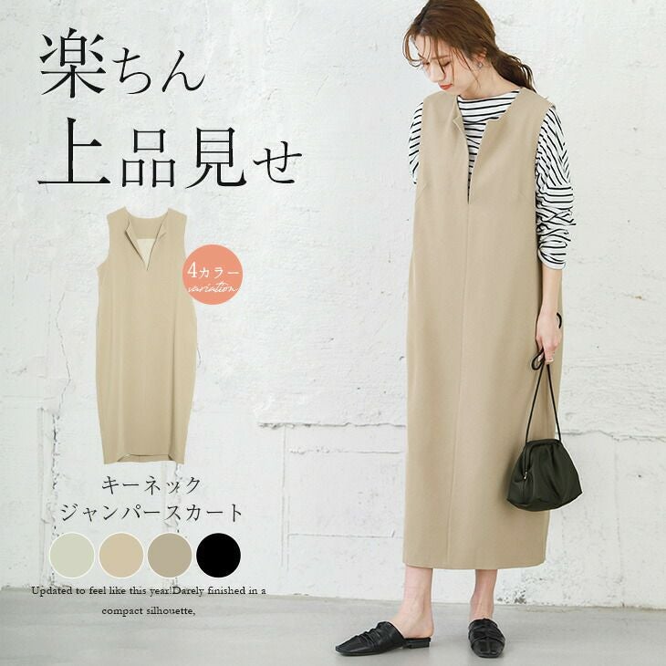 キーネック ジャンパースカート オールインワン レディース キーネック ジャンパースカート オールインワン レディース バックギャザー 楽ちん ジャンスカ スカート ワンピース ポケット 大人カジュアル きれいめ ボトムス ブラック メール便 2025秋新作 M/L 【lgww-at4308】【即納:1-5営業日】【送料無料】メ込2