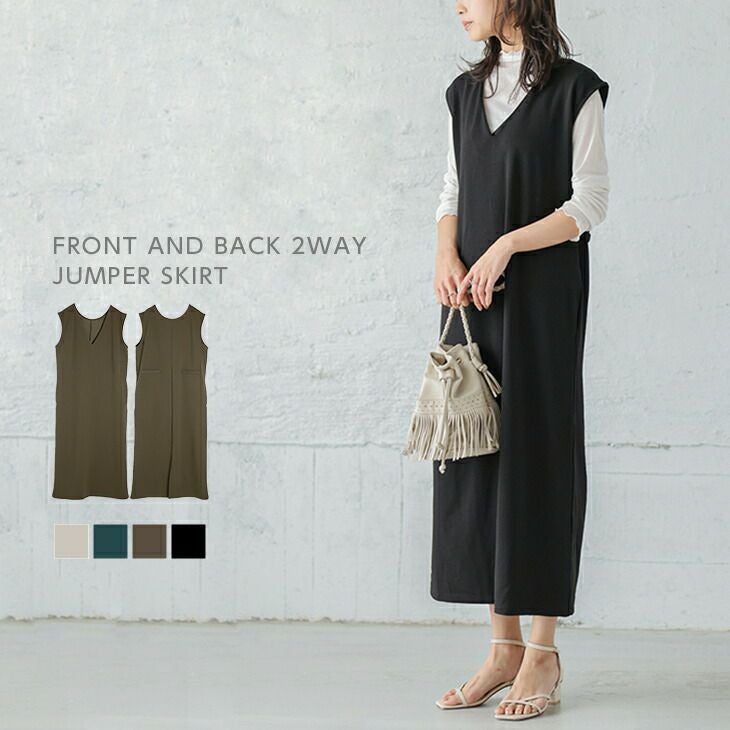 前後2way ジャンパースカート レディース ワンピース ロング 前後2way ジャンパースカート レディース ワンピース ロング VネックUネック ジャンスカ Iライン 体型カバー ポケット 大人 きれいめ カジュアル ブラック メール便 2025秋新作 【lgww-at5006】【即納:1-5営業日】【送料無料】メ込2