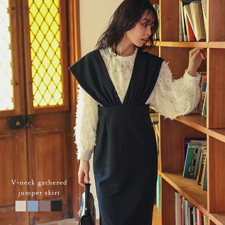 ジャンパースカート ジャンスカ Vネック ギャザー スリット 【秋冬半額SALE対象】 ジャンパースカート ジャンスカ Vネック ギャザー バックスリット レイヤード オールシーズン サロペット レディース おすすめ おしゃれ 2025春夏新作 【lssrss24-618】【即納:1-5営業日】【送料無料】メ込2