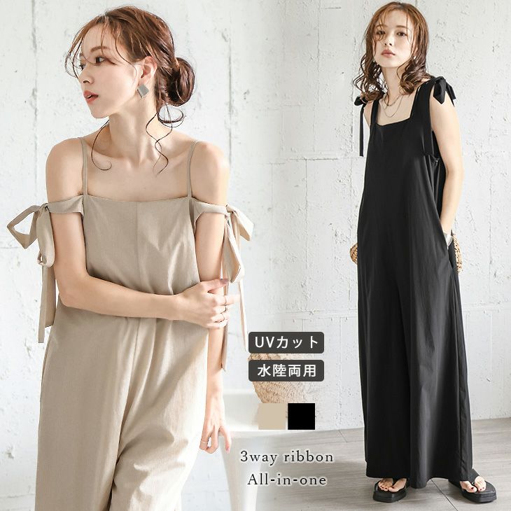 ラッシュガード 3way オールインワン 水陸両用 ラッシュガード 3way オールインワン サロペット 水陸両用 UVカット リボン 海 プール レジャー 旅行 トレンド レディース おすすめ おしゃれ メール便 2025春夏新作【lswpss24-542】【即納:1-5営業日】【送料無料】ユ込3