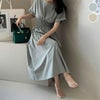 ワンピース ロング丈 ロングワンピース ウエストシャーリング [AMELY by La-gemme]ワンピース ロング丈 ロングワンピース ウエストシャーリング 半袖 着?せ シンプル カジュアル 細見え きれいめ スッキリ リゾート【awp406-190】【予約販売:15-20日】【送料無料】メ込2