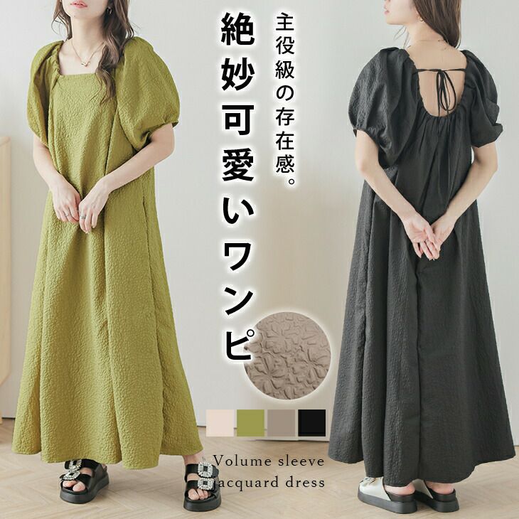 ジャガードロングワンピース ボリューム袖 半袖 レディース [AMELY by La-gemme]ジャガードロングワンピース ボリューム袖 半袖 レディース おすすめ おしゃれ 肌見せ ブラック メール便 2025春夏新作【awp301-387】【即納:1-5営業日】【送料無料】メ込3