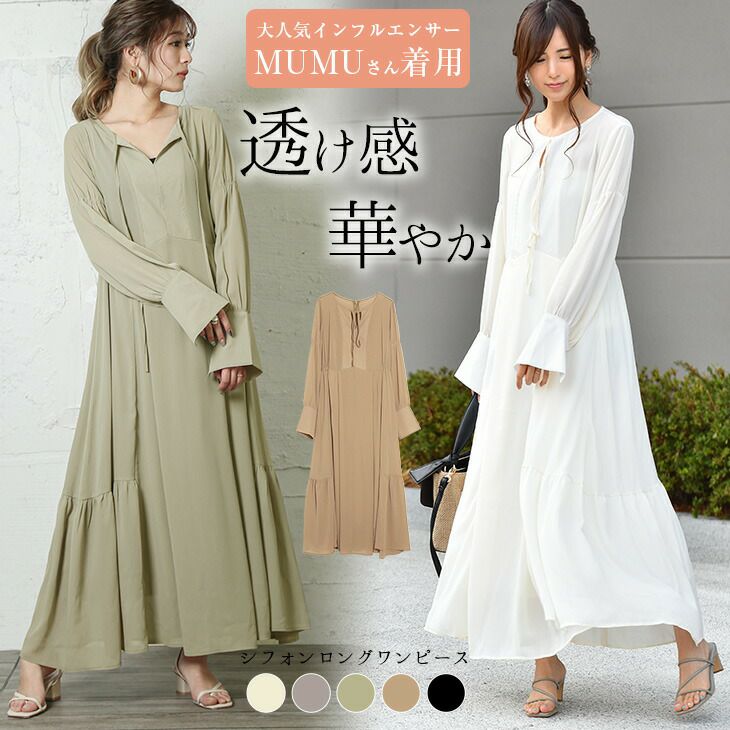 シフォン ロングワンピース レディース マキシ丈 ロング丈 【最終入荷!ラストチャンス!】【アメブロオフィシャルブロガーMUMUさんコラボカラー発売!】 シフォン ロングワンピース レディース マキシ丈 ロング丈 長袖 ワンピース ワンピ ギャザー 透け感 シアー 大人 可愛い ブラック ホワイト 2025秋新作 M/L 【lgww-at4429】【即納:1-5営業日】【送料無料】メ込4