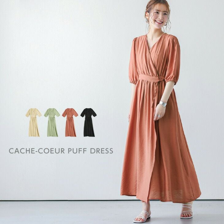 ワンピース ロングワンピース カシュクール パフ 5分袖 ワンピース ロングワンピース カシュクール パフ 5分袖 レディース おすすめ おしゃれ ブラック フリーサイズ メール便 2025秋新作 【lswp203-388】【即納:1-5営業日】【送料無料】ヤ込1