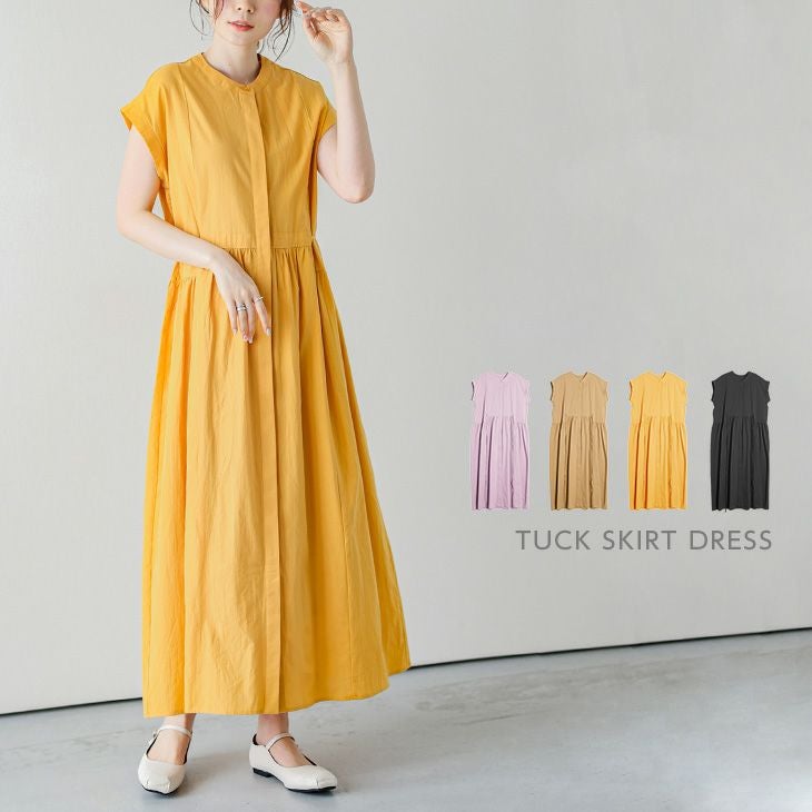 タックワンピース フレンチスリーブ 半袖 綿100% 日本製 タックワンピース フレンチスリーブ 半袖 綿100% レディース おすすめ おしゃれ ブラック フリーサイズ 2025秋新作 【lswp203-427】【即納:1-5営業日】【送料無料】宅込