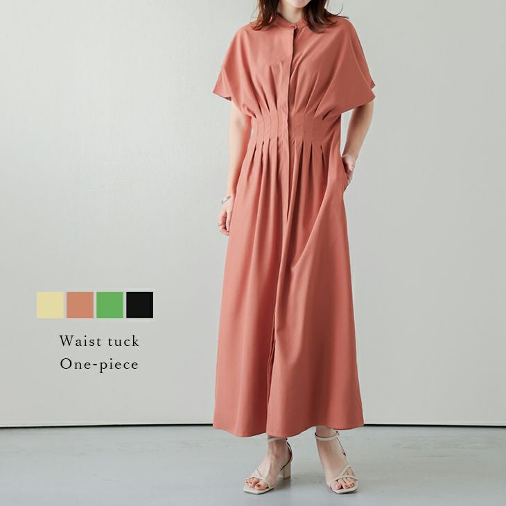 ウエストタックワンピース ロング 半袖 レディース ウエストタックワンピース ロング 半袖 タックデザインレディース おすすめ おしゃれ ブラック フリーサイズ 結婚式 メール便 2025春夏新作 【lswp205-580】【即納:1-5営業日】【送料無料】メ込2
