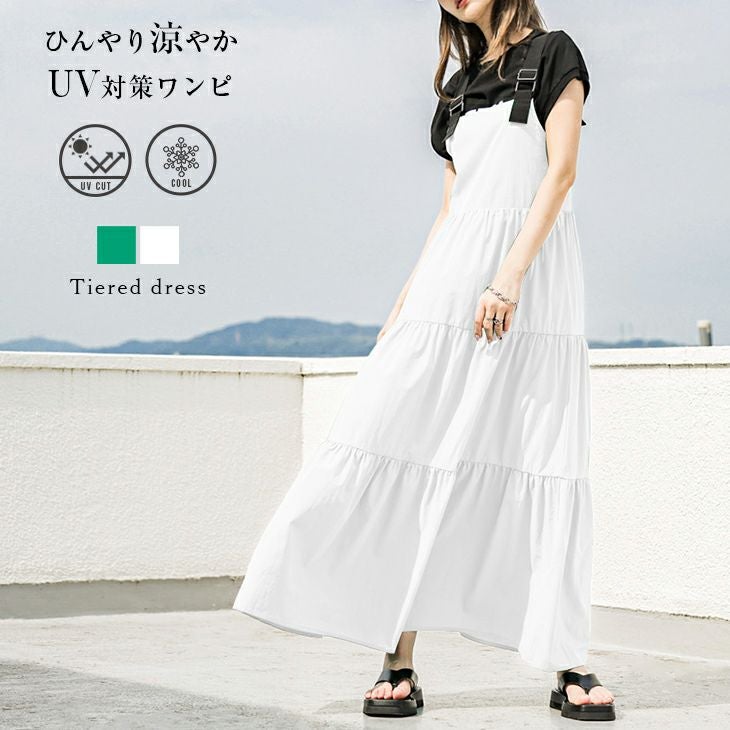 ジャンパースカート ティアード 肩紐調節可能 ジャンパースカート ティアード ロング 肩紐調節可能 ワンピース 可愛い 体系カバー ノースリーブ レディース 接触冷感 UVカット メール便 2025春夏新作【lswp301-588】【即納:1-5営業日】【送料無料】ユ込3