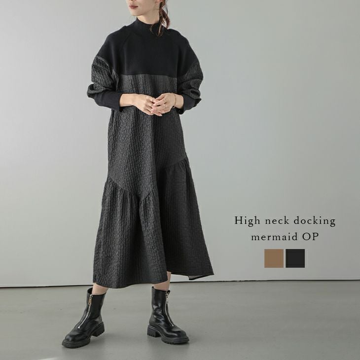 ワンピース ドッキング リブニット ハイネック ワンピース ドッキング リブニット ハイネック マーメイドスカート レディース おすすめ おしゃれ ブラック フリーサイズ 2025春夏新作 【lswp305-594】【即納:1-5営業日】【送料無料】宅込