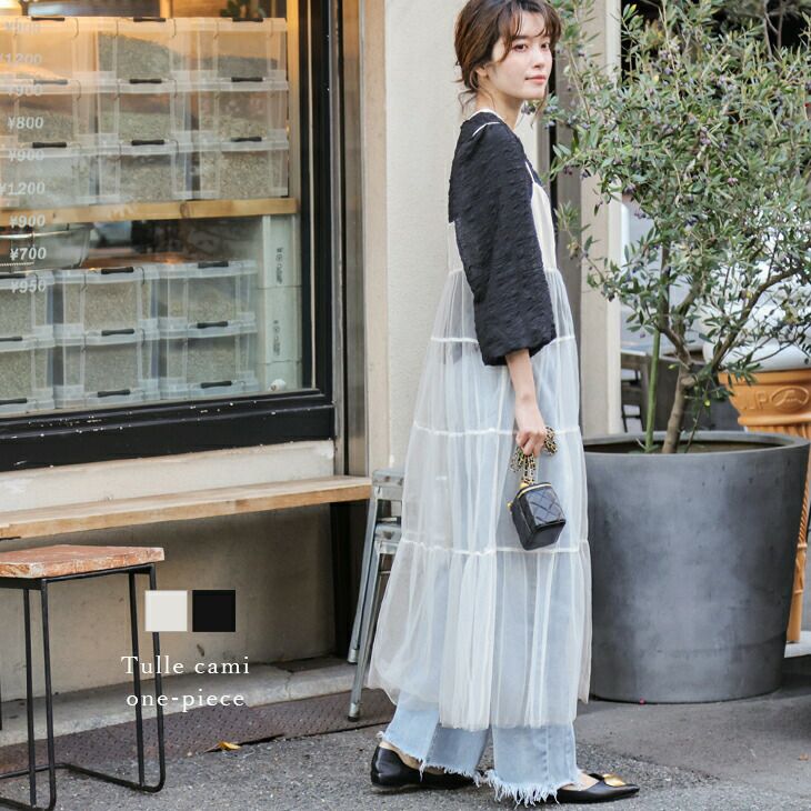 ワンピース キャミソール チュール シアー 透け ワンピース キャミソール チュール シアー 透け レイヤード フレア ノースリーブ レディース おすすめ おしゃれ フリーサイズ メール便 2025春夏 【lswp308-576】【即納:1-5営業日】【送料無料】メ込1