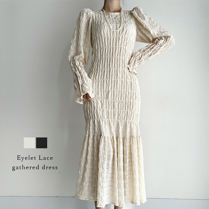ギャザーワンピース レース ミディアム キレイめ [AMELY by La-gemme]ギャザーワンピース レース ミディアム キレイめ 大人可愛い 上品 長袖 美シルエット スタイルアップ トレンド レディース おすすめ おしゃれ フリーサイズ メール便 2025春夏新作 【awpss24-209】【即納:1-5営業日】メ込4