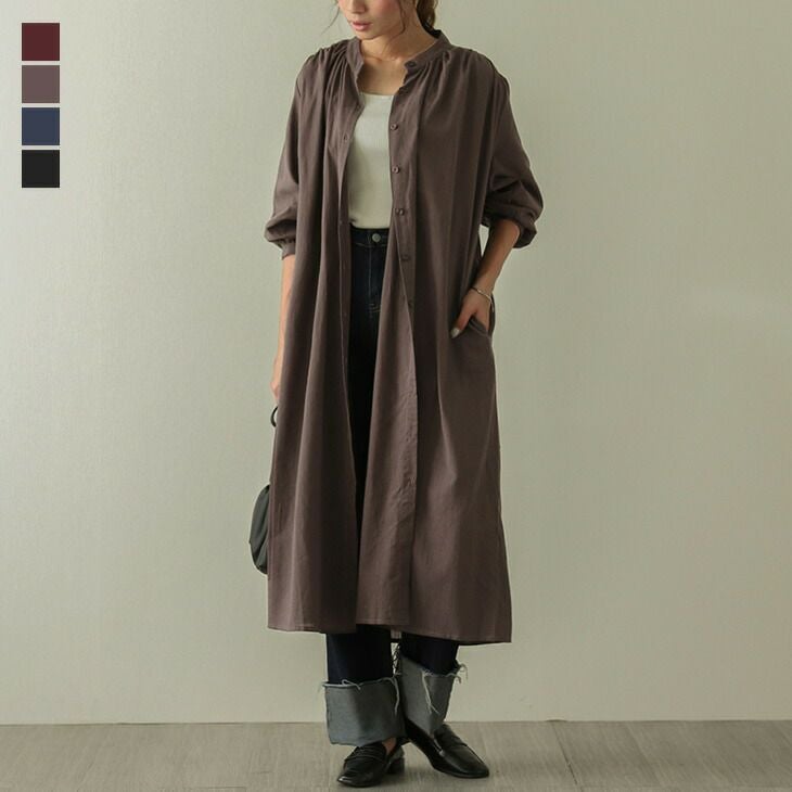 シャツワンピース フレアシルエット バンドカラー シャツ シャツワンピース フレアシルエット バンドカラー シャツ ワンピ 2way レディース ミディアム丈 おしゃれ 可愛い ブラック メール便 2025秋新作 フリー【lgww-at4869】【即納:1-5営業日】【送料無料】メ込2