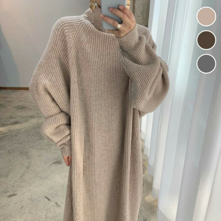 ハイネック ボリュームスリーブ ニットワンピース ボリューム袖 [AMELY by La-gemme]ハイネック ボリュームスリーブ ニットワンピース ボリューム袖 ゆるシルエット ふわもこ 大人かわいい 体型カバー おすすめ レディース オシャレ トレンド 人気 プチプラ 韓国ファッション 【503-jf】【予約販売:15-20日】【送料無料】宅込