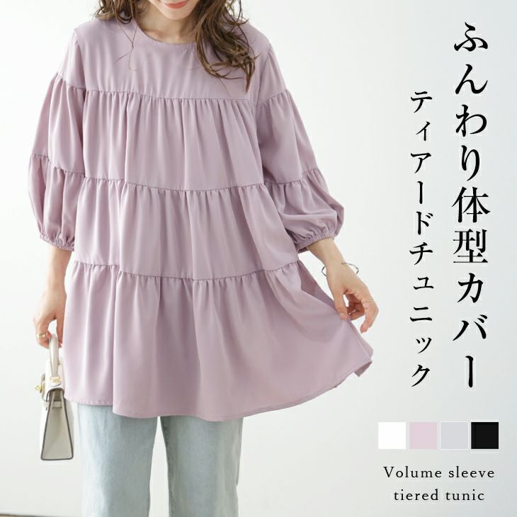 ティアードチュニック ボリュームスリーブ Aライン 【春夏半額SALE対象】 ティアードチュニック ボリュームスリーブ Aライン ギャザー 比翼ボタン 体型カバー 大人かわいい レディース フリーサイズ メール便 2025春夏新作 【lstpss24-402】【即納:1-5営業日】【送料無料】メ込2