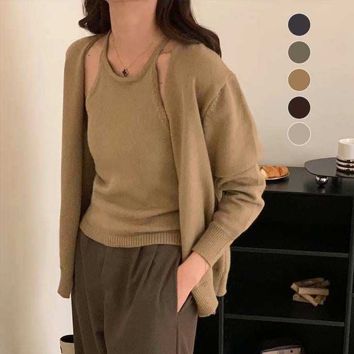 [AMELY by La-gemme]アメリカンスリーブ キャミソール カーディガン [AMELY by La-gemme]アメリカンスリーブ キャミソール カーディガン トップス 長袖 レイヤード 重ね着 きれいめ カジュアル ガーリー 女子会 シンプル お洒落 レディース 大人 韓国ファッション【atp208-082】【即納:1-5営業日】【送料無料】ヤ込2