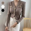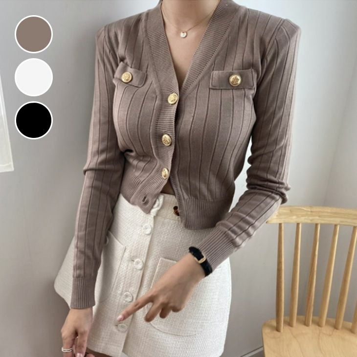 リブニットカーディガン Vネック ゴールドボタン トップス [AMELY by La-gemme]リブニットカーディガン Vネック ゴールドボタン ニットウェア トップス ブラウン 黒 ホワイト おすすめ レディース トレンド 人気 プチプラ 韓国ファッション 2025春夏新作 【atp308-123】【予約販売:15-20日】【送料無料】メ込3