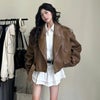 アウター フェイクレザー ライダース ジャケット PUレザー [AMELY by La-gemme]アウター フェイクレザー ライダース ジャケット PUレザー ショート丈 オーバーサイズ 長袖 レディース 韓国ファッション 【24aw-it43】【予約販売:15-20日】【送料無料】60込