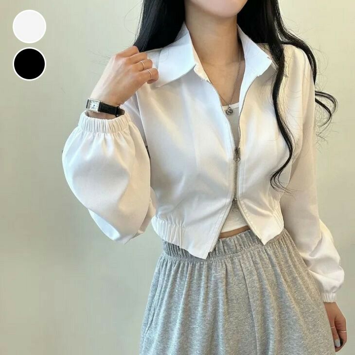 アウター Wジップ ジャケット ドロスト クロップド [AMELY by La-gemme]アウター Wジップ ジャケット ドロスト クロップド ショート丈 ブルゾン カジュアル 長袖 レディース 韓国ファッション 【24aw-it46】【予約販売:15-20日】【送料無料】メ込2