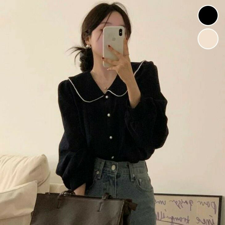 ビッグカラー ブラウス パイピング Vネック 上品 [AMELY by La-gemme]ビッグカラー ブラウス パイピング Vネック 上品 トップス きれいめ オフィス 長袖 秋冬 シンプル おすすめ レディース オシャレ トレンド 人気 プチプラ 韓国ファッション 【40151-xjm】【予約販売:15-20日】【送料無料】メ込2