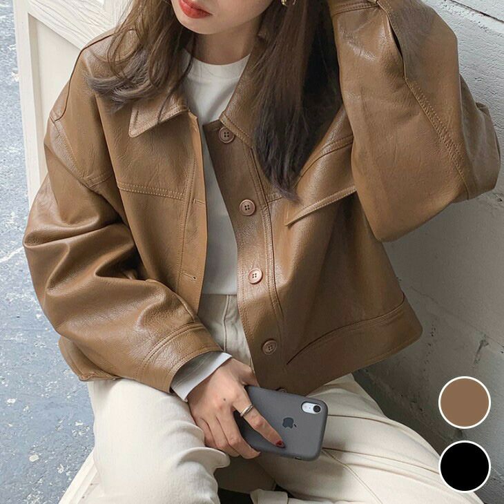 ドロップショルダー レザー調ブルゾン ショートアウター ク [AMELY by La-gemme]ドロップショルダー レザー調ブルゾン ショートアウター クロップド丈 キレイめカジュアル ポケット付き おすすめ おしゃれ レディース トレンド 人気 プチプラ 韓国ファッション 2025新作 【56900-fx2】【予約販売:15-20日】【送料無料】宅込