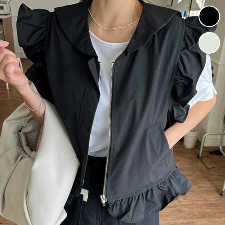 フリルショルダージャケット ブルゾン コート スプリン [AMELY by La-gemme]フリルショルダージャケット ブルゾン コート スプリングコート 可愛い フェミニン 少女 おすすめ レディース オシャレ トレンド 人気 プチプラ 韓国ファッション 【a8812-xjmb】【予約販売:15-20日】【送料無料】メ込2