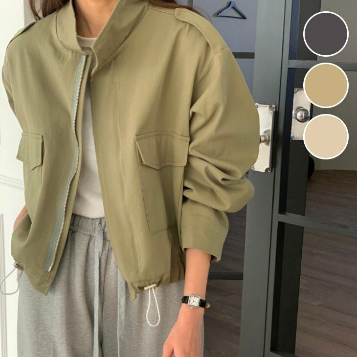 スタンドカラー ショート丈 ジッパー ジャケット ドロスト [AMELY by La-gemme]スタンドカラー ショート丈 ジッパー ジャケット ドロスト 薄手 カジュアル シンプル ビッグシルエット おすすめ レディース トレンド 人気 プチプラ 韓国ファッション 2025春夏新作 【aot305-656】【予約販売:15-20日】【送料無料】メ込4